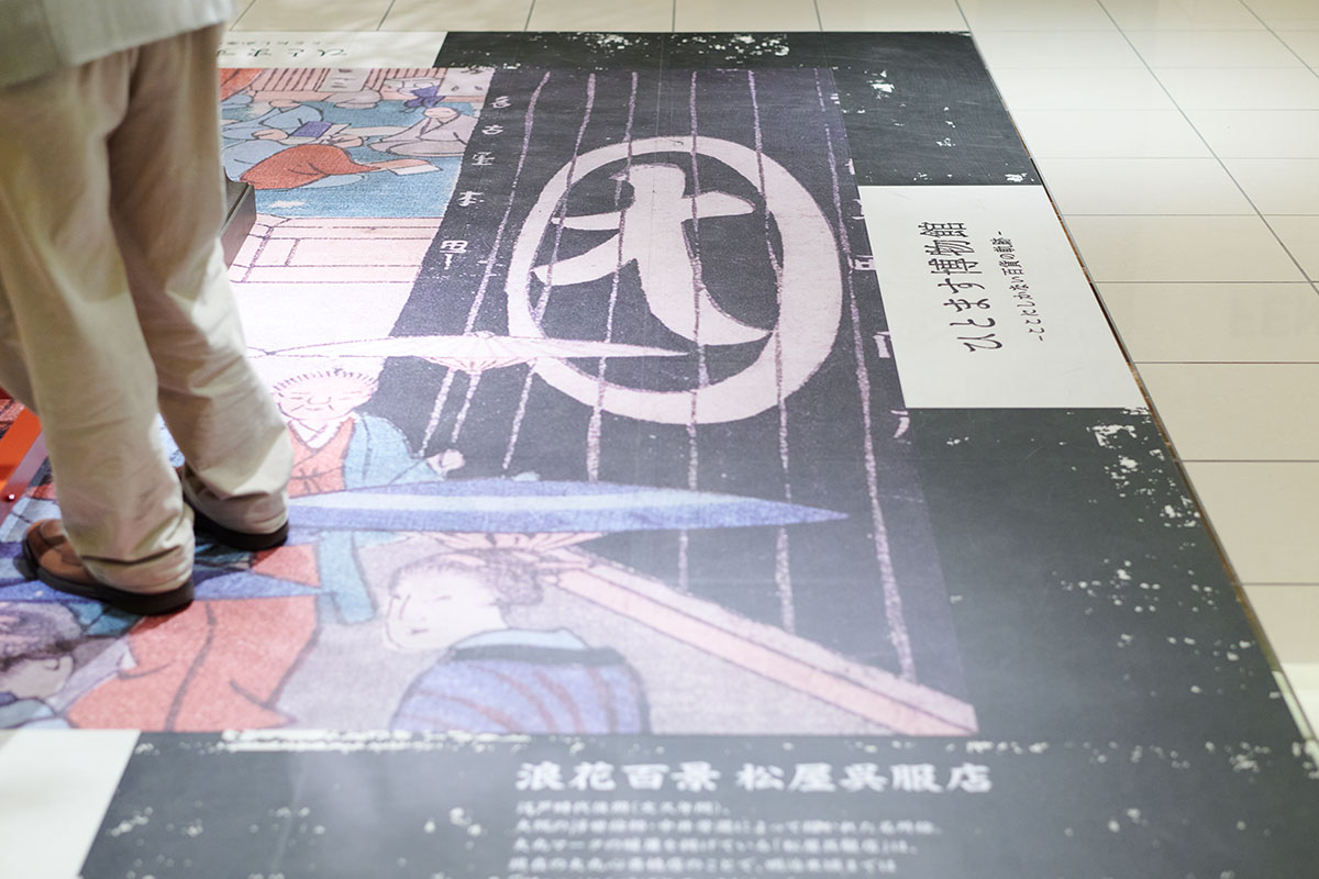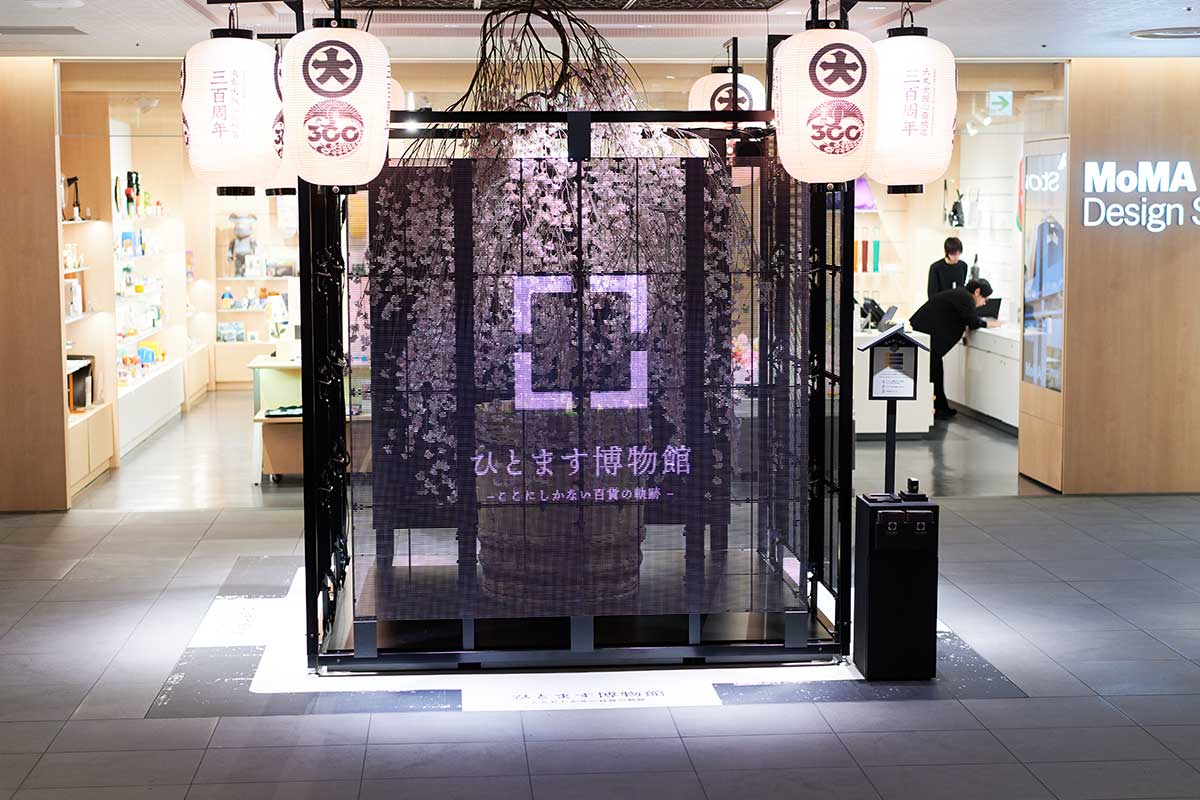 「ひとます博物館」とは、300年の歴史をさまざまな視点から紐解いていこうという展示企画で、1階から8階の各階エスカレーター前の約2帖ほどの“一マス(ひとます)”スペースを使って、3月6日(金)から4月1日(水)まで展開されていました。