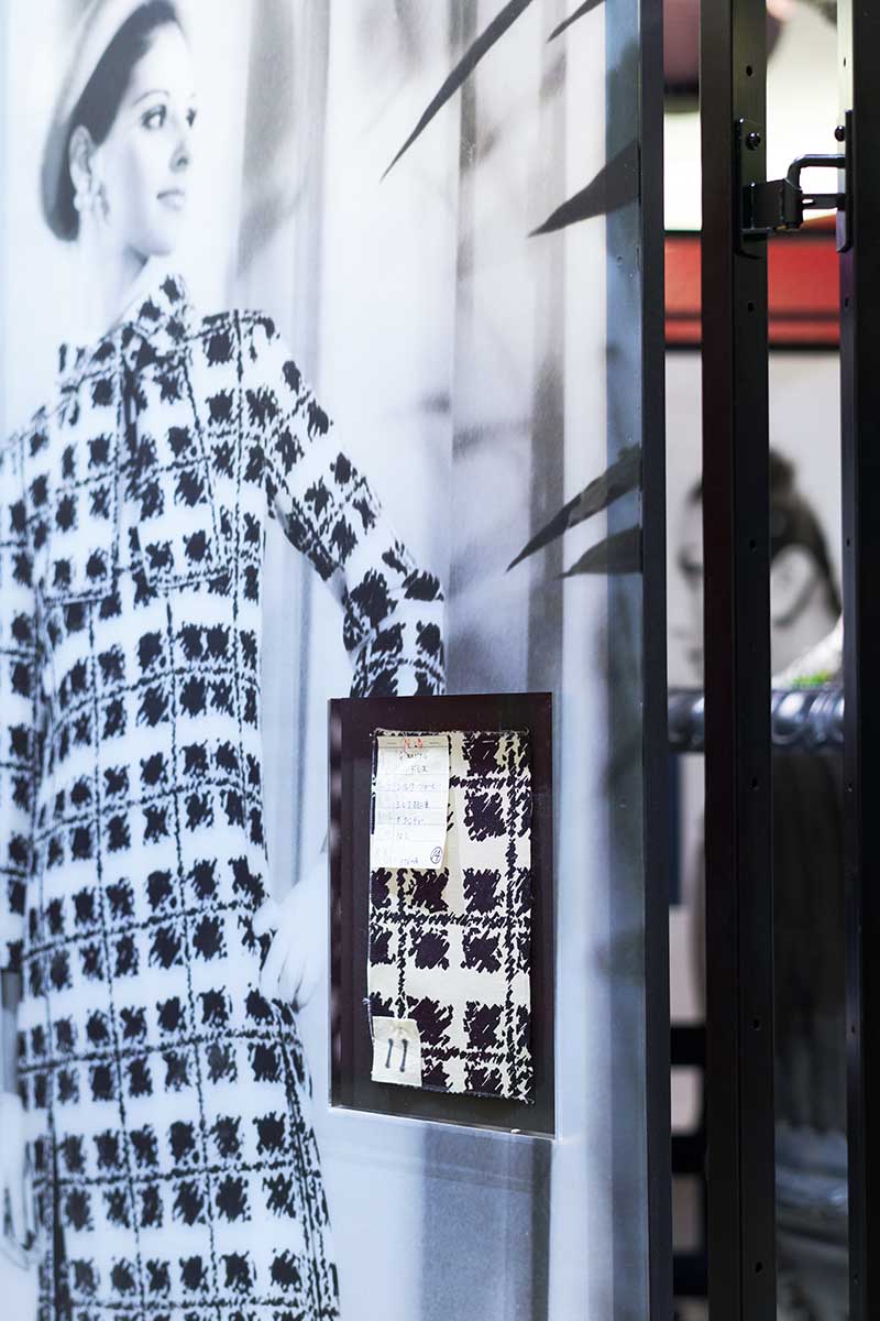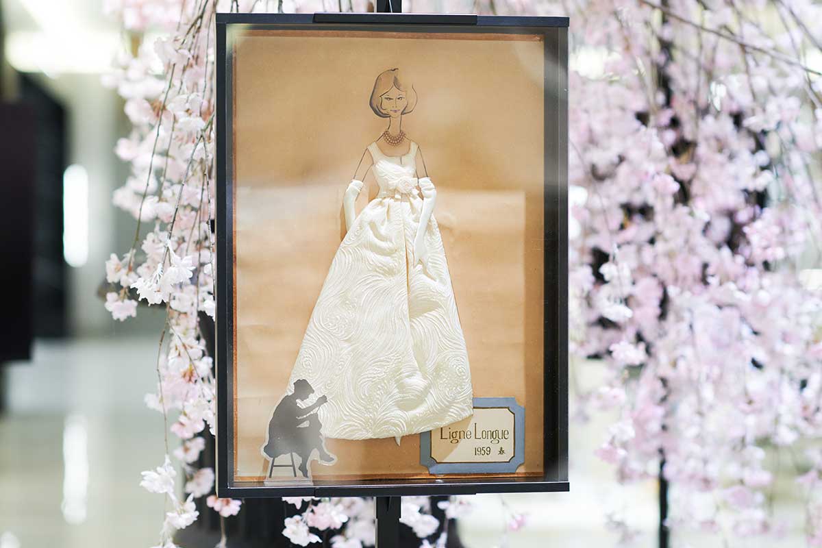 3階は「オートクチュールの歴史」の展示です。1953(昭和28)年には、「クリスチャン・ディオール」と日本で初めて海外デザイナーとの提携をし、1964(昭和39)年には、「ジバンシィ」と独占契約を結ぶなど、海外ファッションブランドとの関係が早くから構築されていた大丸心斎橋店。服飾学院を持っていた上田安子を顧問デザイナーに招き、海外での買い付けを担当。オートクチュールを製作していました。