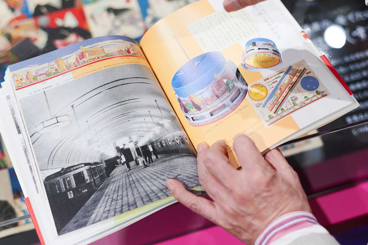 「これは、梅田—大丸開通記念につくられた、回すと地下鉄が走るメリーゴーランド。1933(昭和8)年に梅田—心斎橋間の地下鉄が開通し、翌年に今みたいに地下通路で駅と大丸がつながった。だから梅田—心斎橋開通記念ではなくて、梅田—大丸地下鉄開通記念と記されている。地下鉄と店が直接つながったということで、大丸は誇らしかったんでしょうなあ」