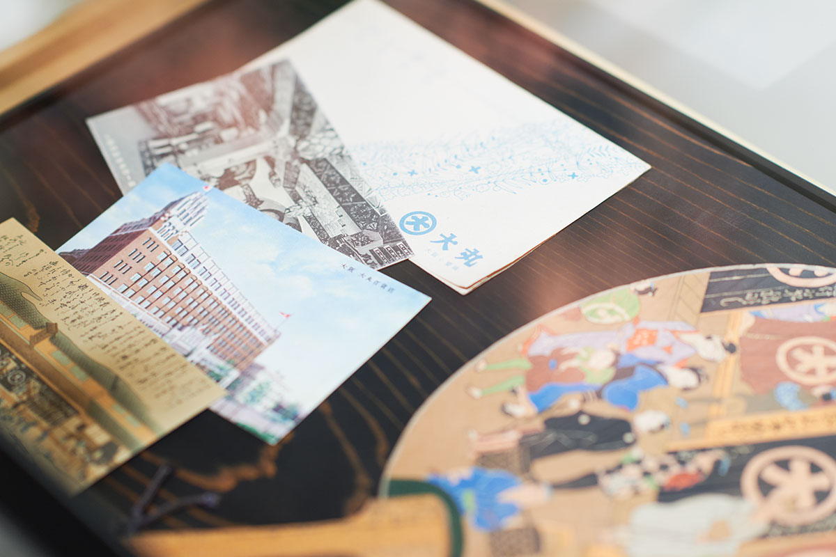 「大丸の絵葉書は結構持っていて、ここに展示しているものもありますね。この『全館完成店内御案内』は、別バージョンを持っているので、あとでお見せします」と橋爪さん。