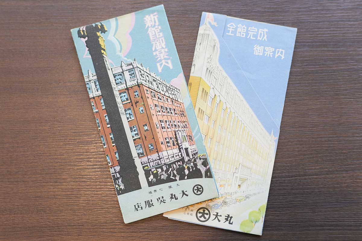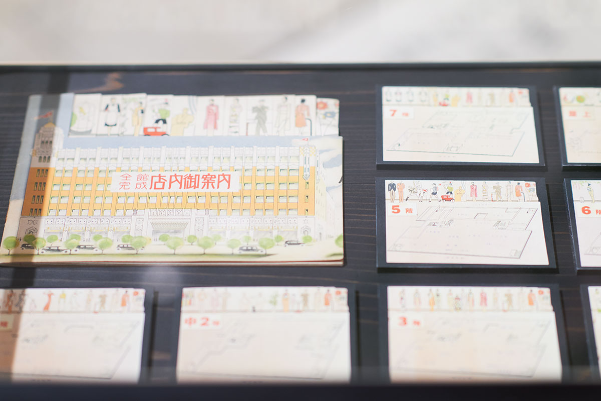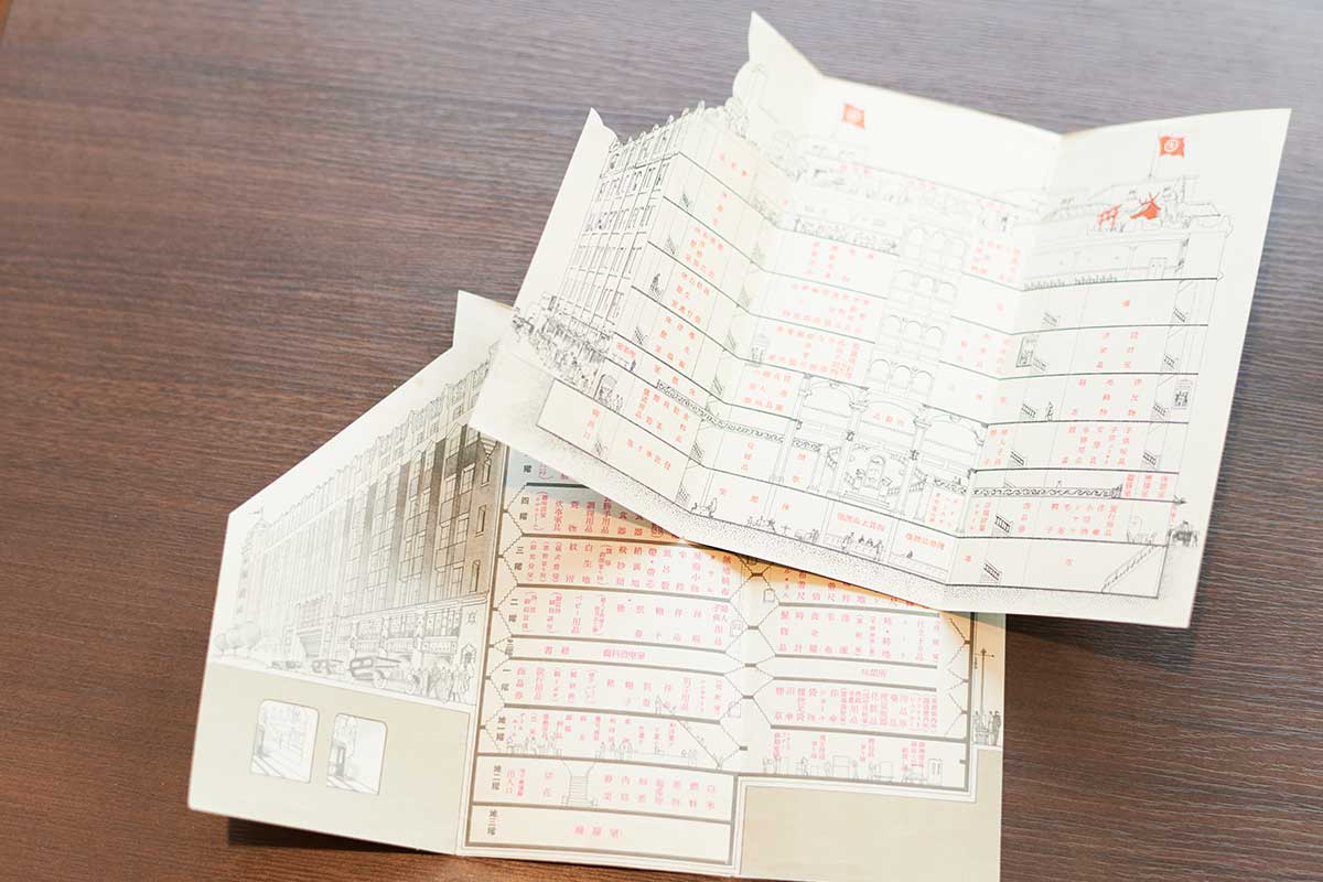 「先ほど7階の『ひとます博物館』にも展示されていましたが、昔の館内案内リーフレットです。大正末に発行された『新館御案内』には、地下鉄への通路はなくて屋上遊園地が描かれていますが、昭和初期の『全館完成御案内』では、地下鉄への通路と水晶塔が描かれている。この2つを見ても館の変化がわかります」