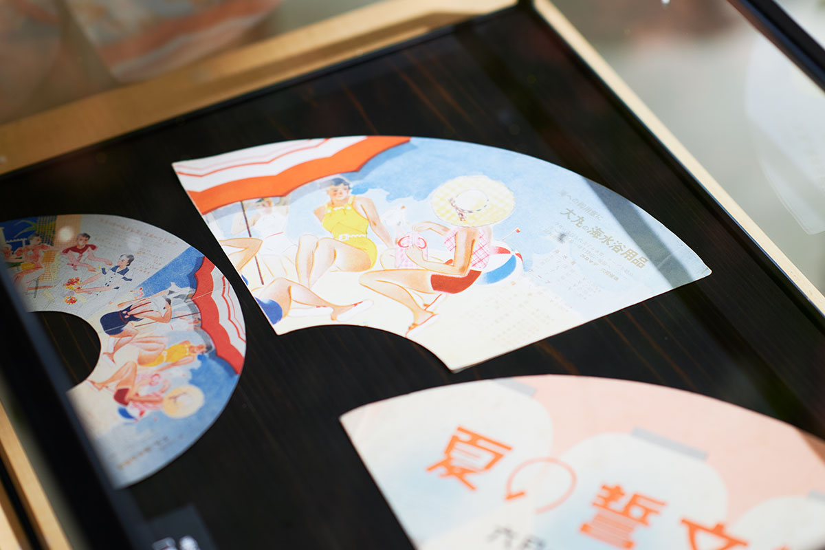 『モダン心斎橋コレクション』に載っている大丸心斎橋店のことは後ほど詳しく聞くことにして、続いて6階へと向かいます。このフロアではエスカレーターの東側と西側で異なる展示がされていて、東側では引札が展示されていました。