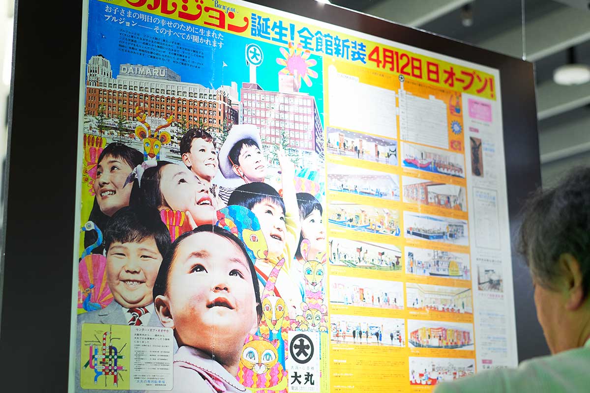 8階では、日本初の百貨店こども館「ブルジョン」として1970(昭和45)年に竣工した南館オープン時の広告や各階案内図・オープン当日の店内写真なども展示されていました。