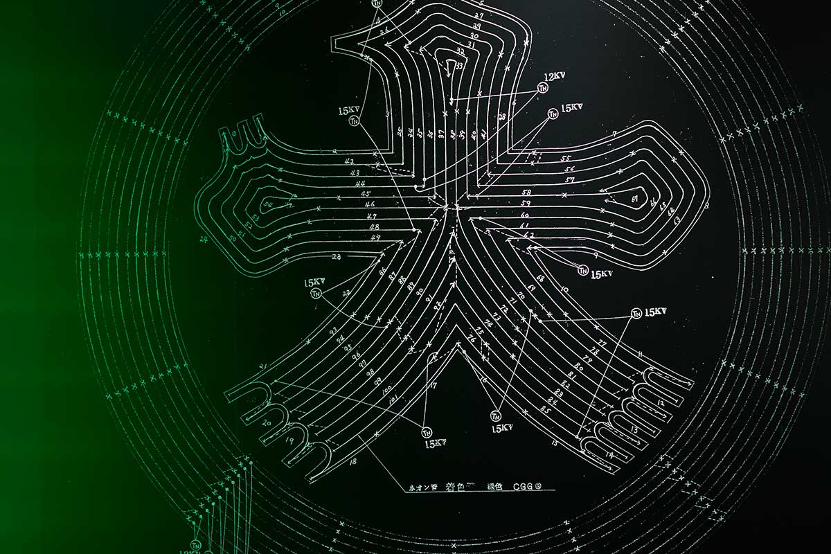大丸心斎橋店の前身、松屋呉服店創業時から使われていた、大の字を◯で囲むおなじみのトレードマーク。“大という字は、一と人を合わせたもので、丸は宇宙・天下を示す”ことから、天下第一の商人であれという、創業者の下村彦右衛門正啓の志と決意が込められたと伝えられていますが、1913(大正2)年に、縁起のいい七五三の髭文字を商標登録しました。