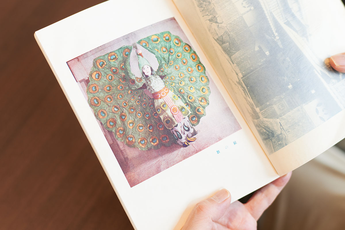 「これは、大阪の四花街である新町で行われていた『浪花踊』のパンフレット。京都・祇園の『都をどり』みたいなもんでしょうな。この第15回のパンフレット裏表紙に大丸のマークが入っている。協賛してたってことでしょう。中面にはほかの百貨店の広告も入っているんですが、大丸さんは格が上だったのかな。孔雀の舞の写真も載っているので、その縁だったのかもしれませんが(笑)」