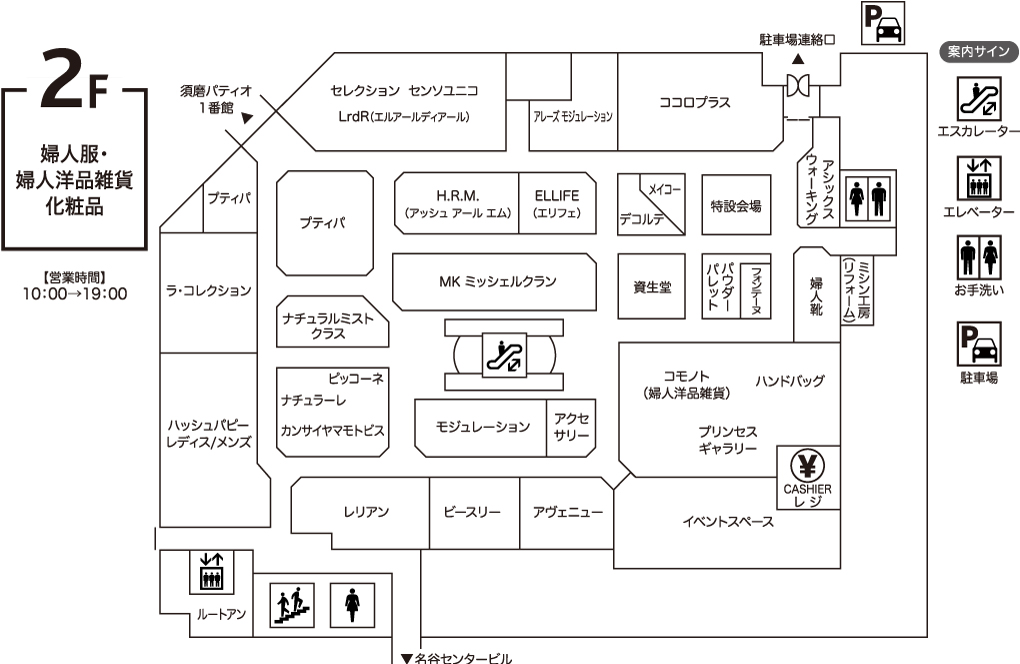 婦人服、婦人洋品雑貨、化粧品、イベントスペース