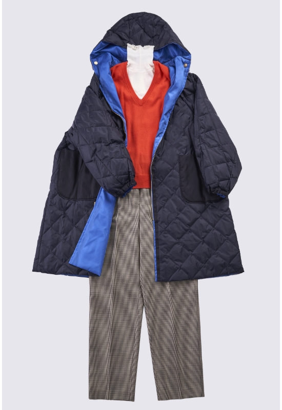レディライクで上品な佇まいのハーフ丈接結コート。目を惹くビックカラーは、トレンドを取り入れながらも知的な印象に。