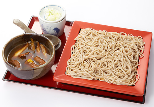 焼き目の付いた鴨肉と長ねぎをコクのある味わいの秘伝のタレにさっと煮込み、香り食感のある太兵衛そばと絡めてお召し上がりください。