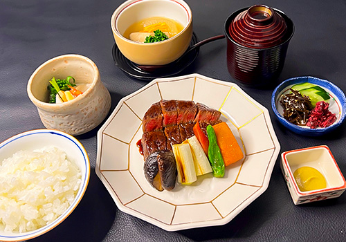 厳選された和牛フィレをつる家伝統のテリヤキソースでお召し上がりください。