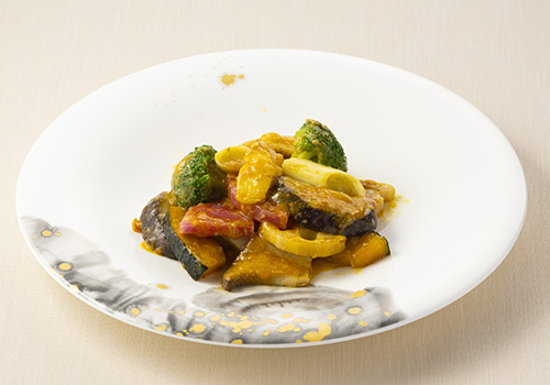 上海蟹の濃厚なミソや身に色とりどりの野菜を加え、見た目も味も華やかな一皿でございます。