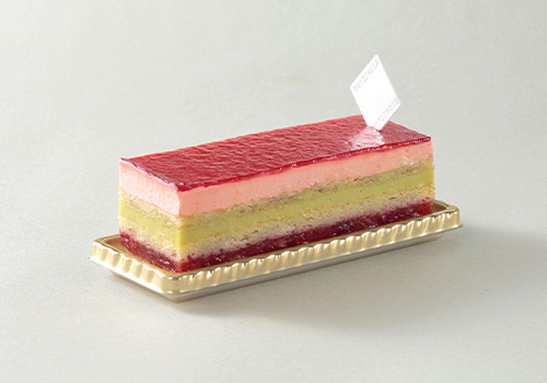 苺のバタークリーム、ピスタチオガナッシュ、フレーズコンポートの重なり合う味わいをお楽しみください。