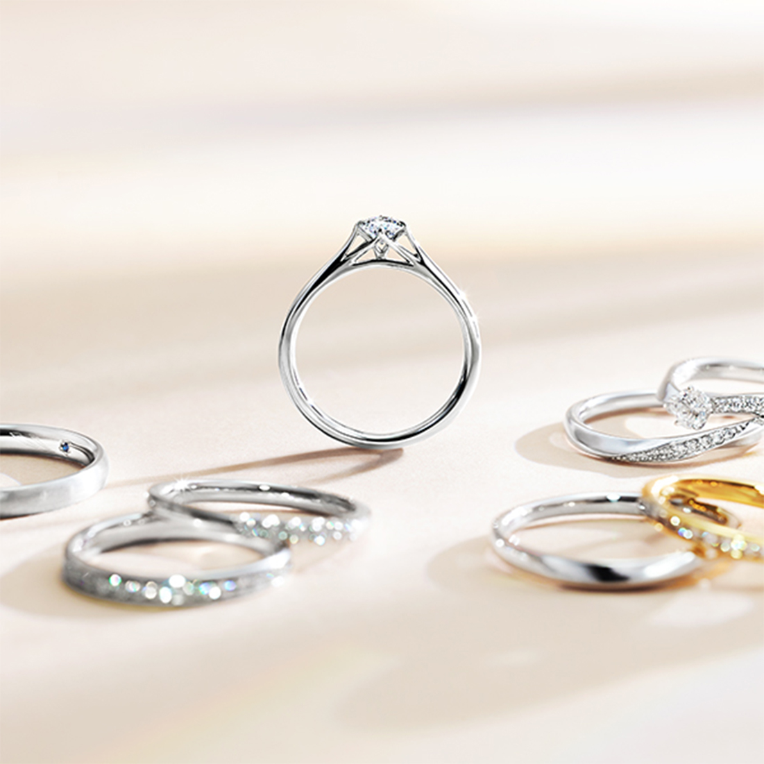 マリッジリングをご成約のお客様に、リングの内側に4色のダイヤモンド・12カ月のバースストーンの中からお好きな1石をセッティング。